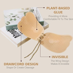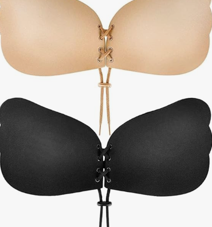 Backless Strapless Bra Push Up, Adhesive Invisible Lift Up Bras 2 Pairs Black/Beige
