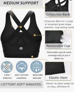 Bra for Women, Criss-Cross Back Padded Strappy Sports Bras Medium Support Yoga Bra with Removable Cups Product details Fabric […]
